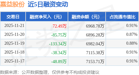 证券之星消息,11月21日,嘉益股份(301004)融资买入454.43万元,融资偿还381.94万元,融资净买入72.49万元,融资余额6968.78万元。