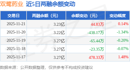 证券之星消息,11月21日,双鹭药业(002038)融资买入1576.13万元,融资偿还1526.69万元,融资净买入49.44万元,融资余额3.21亿元。