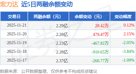 证券之星消息,11月21日,宏力达(688330)融资买入2365.42万元,融资偿还2336.94万元,融资净买入28.48万元,融资余额2.29亿元。