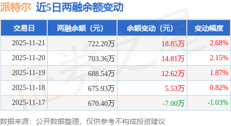 证券之星消息,11月21日,派特尔(920871)融资买入120.35万元,融资偿还101.5万元,融资净买入18.85万元,融资余额722.2万元,近3个交易日已连续净买入累计46.28万元,近20个交易日中有12个交易日出现融资净买入。