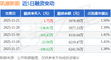 证券之星消息,11月21日,凯盛新能(600876)融资买入224.74万元,融资偿还222.99万元,融资净买入1.75万元,融资余额5978.99万元。