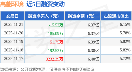 证券之星消息,11月21日,高能环境(603588)融资买入3082.55万元,融资偿还3098.06万元,融资净卖出15.52万元,融资余额6.37亿元。