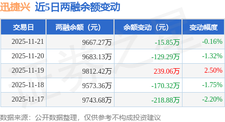 证券之星消息,11月21日,迅捷兴(688655)融资买入301.64万元,融资偿还317.49万元,融资净卖出15.85万元,融资余额9667.27万元。
