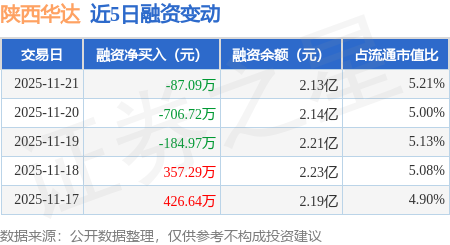 证券之星消息,11月21日,陕西华达(301517)融资买入1642.91万元,融资偿还1730.0万元,融资净卖出87.09万元,融资余额2.13亿元,近20个交易日中有11个交易日出现融资净买入。