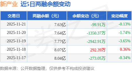 证券之星消息,11月21日,新产业(300832)融资买入783.13万元,融资偿还883.47万元,融资净卖出100.34万元,融资余额7.59亿元。
