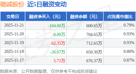 证券之星消息,11月21日,驰诚股份(920407)融资买入120.76万元,融资偿还224.77万元,融资净卖出104.0万元,融资余额600.65万元。