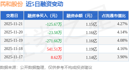 证券之星消息,11月21日,民和股份(002234)融资买入487.08万元,融资偿还612.75万元,融资净卖出125.67万元,融资余额1.15亿元。