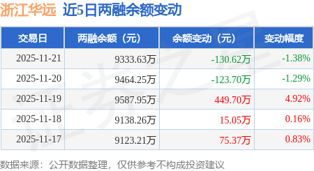 证券之星消息,11月21日,浙江华远(301535)融资买入329.61万元,融资偿还460.23万元,融资净卖出130.62万元,融资余额9333.63万元。