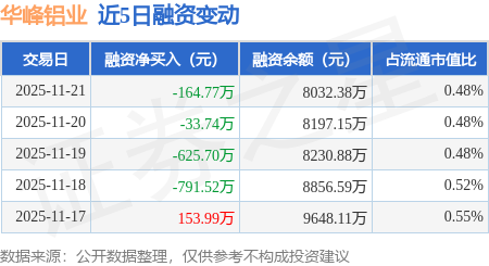 证券之星消息,11月21日,华峰铝业(601702)融资买入760.21万元,融资偿还924.98万元,融资净卖出164.77万元,融资余额8032.38万元。