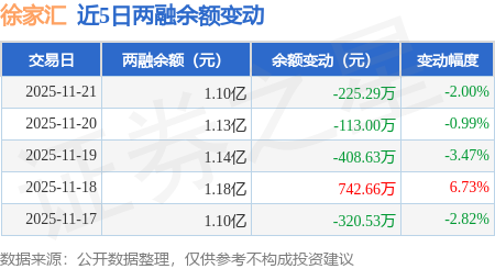 证券之星消息,11月21日,徐家汇(002561)融资买入632.73万元,融资偿还858.02万元,融资净卖出225.29万元,融资余额1.1亿元。