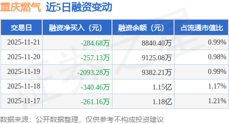 证券之星消息,11月21日,重庆燃气(600917)融资买入764.84万元,融资偿还1049.52万元,融资净卖出284.68万元,融资余额8840.4万元。