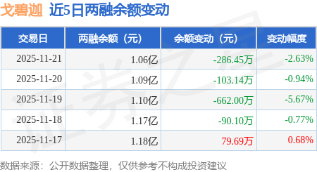 证券之星消息,11月21日,戈碧迦(920438)融资买入381.18万元,融资偿还667.63万元,融资净卖出286.45万元,融资余额1.06亿元。