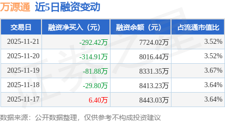 证券之星消息,11月21日,万源通(920060)融资买入213.93万元,融资偿还506.35万元,融资净卖出292.42万元,融资余额7724.02万元。