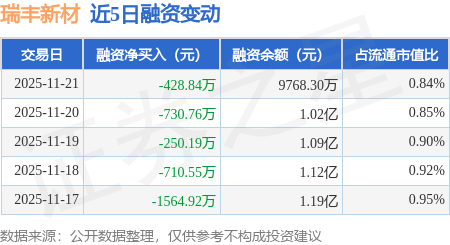 证券之星消息,11月21日,瑞丰新材(300910)融资买入1317.1万元,融资偿还1745.94万元,融资净卖出428.84万元,融资余额9768.3万元。