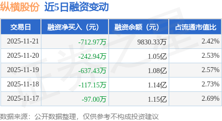 证券之星消息,11月21日,纵横股份(688070)融资买入330.89万元,融资偿还1043.86万元,融资净卖出712.97万元,融资余额9830.33万元。