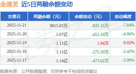 证券之星消息,11月21日,金通灵(300091)融资买入378.61万元,融资偿还1213.77万元,融资净卖出835.16万元,融资余额9815.03万元。