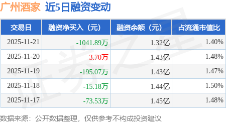 证券之星消息,11月21日,广州酒家(603043)融资买入464.15万元,融资偿还1506.04万元,融资净卖出1041.89万元,融资余额1.32亿元。