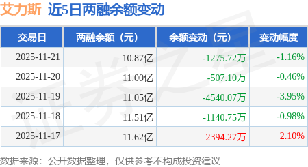 证券之星消息,11月21日,艾力斯(688578)融资买入2305.99万元,融资偿还3532.58万元,融资净卖出1226.59万元,融资余额10.83亿元。