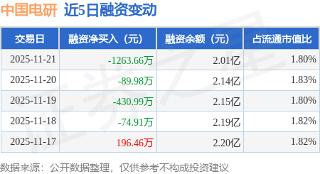 证券之星消息,11月21日,中国电研(688128)融资买入537.45万元,融资偿还1801.11万元,融资净卖出1263.66万元,融资余额2.01亿元。