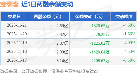 证券之星消息,11月21日,宝泰隆(601011)融资买入3212.99万元,融资偿还4526.37万元,融资净卖出1313.38万元,融资余额2.68亿元。