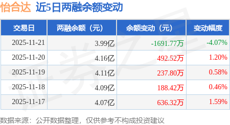 融资融券余额3.99亿元,较昨日下滑4.07%。