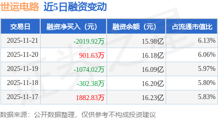 证券之星消息,11月21日,世运电路(603920)融资买入6485.41万元,融资偿还8505.33万元,融资净卖出2019.92万元,融资余额15.98亿元,近20个交易日中有13个交易日出现融资净买入。
