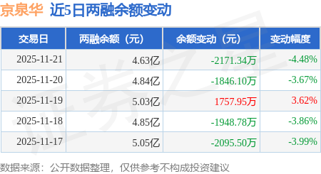 证券之星消息,11月21日,京泉华(002885)融资买入7529.12万元,融资偿还9700.44万元,融资净卖出2171.32万元,融资余额4.63亿元。