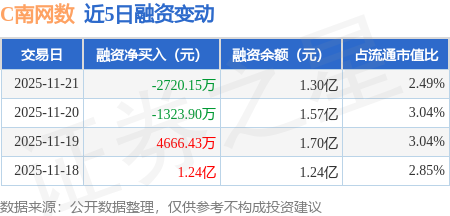 证券之星消息,11月21日,C南网数(301638)融资买入9125.24万元,融资偿还1.18亿元,融资净卖出2720.15万元,融资余额1.3亿元。
