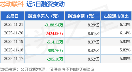 证券之星消息,11月21日,芯动联科(688582)融资买入2984.81万元,融资偿还6173.75万元,融资净卖出3188.94万元,融资余额8.29亿元。