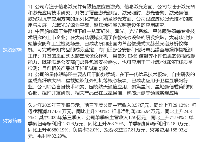 该股为太赫兹,卫星互联网,激光概念热股,当日太赫兹概念上涨4.68%,卫星互联网概念上涨4.49%,激光概念上涨4.44%。