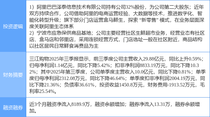 该股为阿里巴巴概念股,新零售概念热股,当日阿里巴巴概念股概念上涨2.89%,新零售概念上涨1.53%。