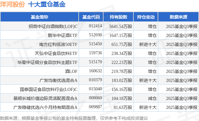 重仓洋河股份的前十大公募基金请见下表: