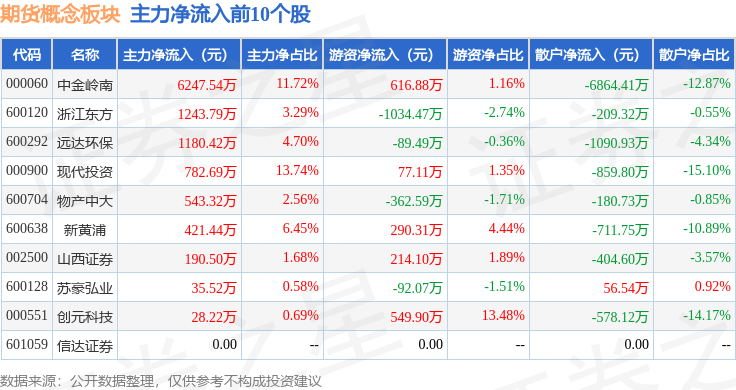 从资金流向上来看,当日期货概念板块主力资金净流出4.38亿元,游资资金净流入1.38亿元,散户资金净流入3.0亿元。期货概念板块个股资金流向见下表: