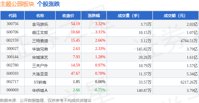 证券之星消息,11月24日主题公园板块较上一交易日上涨1.02%,金马游乐领涨。当日上证指数报收于3836.77,上涨0.05%。深证成指报收于12585.08,上涨0.37%。主题公园板块个股涨跌见下表:
