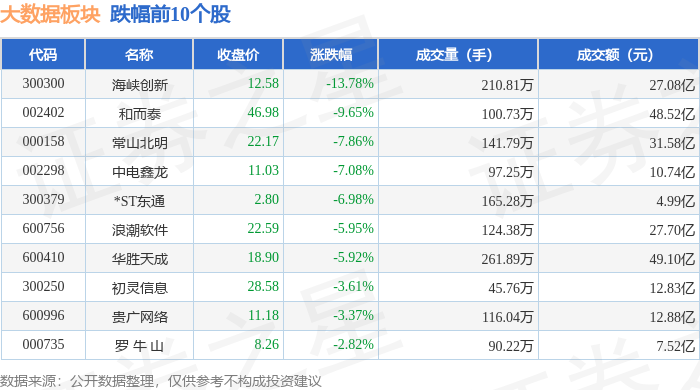 从资金流向上来看,当日大数据板块主力资金净流入19.78亿元,游资资金净流出31.22亿元,散户资金净流入11.45亿元。大数据板块个股资金流向见下表: