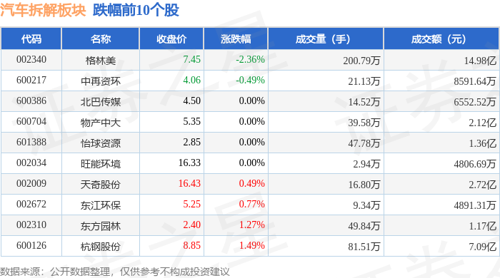 从资金流向上来看,当日汽车拆解板块主力资金净流出1.71亿元,游资资金净流入2149.88万元,散户资金净流入1.49亿元。汽车拆解板块个股资金流向见下表: