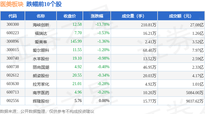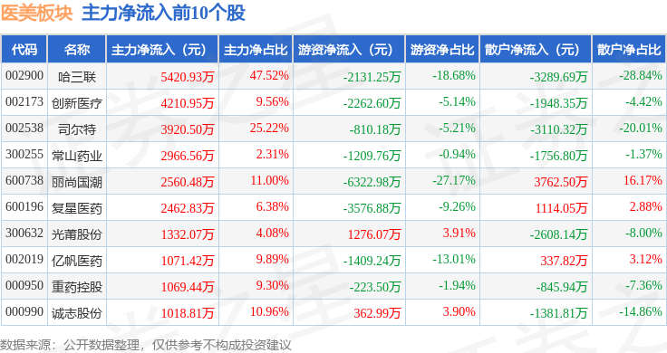 从资金流向上来看,当日医美板块主力资金净流出3.19亿元,游资资金净流出1.17亿元,散户资金净流入4.36亿元。医美板块个股资金流向见下表: