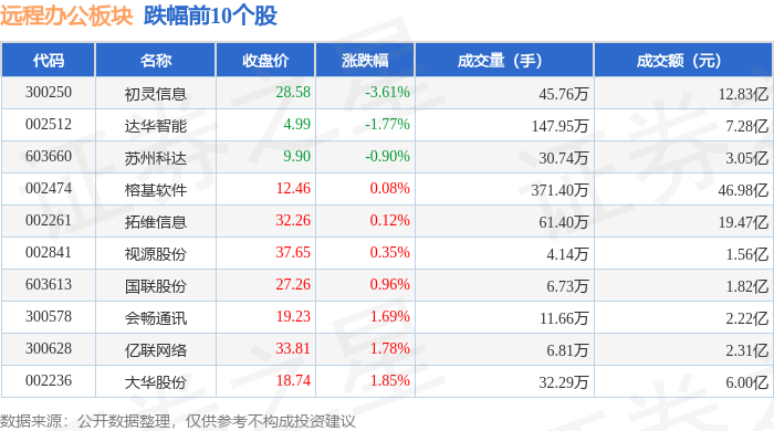 从资金流向上来看,当日远程办公板块主力资金净流出6783.81万元,游资资金净流出2.34亿元,散户资金净流入3.01亿元。远程办公板块个股资金流向见下表: