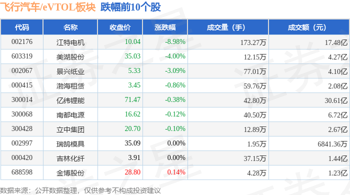 从资金流向上来看,当日飞行汽车/eVTOL板块主力资金净流入4.52亿元,游资资金净流出5.74亿元,散户资金净流入1.22亿元。飞行汽车/eVTOL板块个股资金流向见下表: