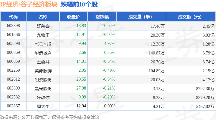 从资金流向上来看,当日IP经济/谷子经济板块主力资金净流入11.34亿元,游资资金净流出2.97亿元,散户资金净流出8.37亿元。IP经济/谷子经济板块个股资金流向见下表: