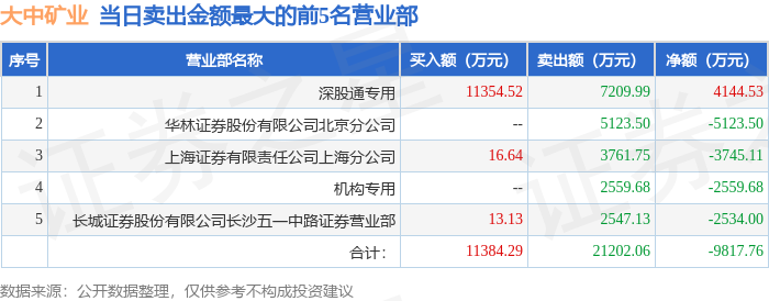 证券之星消息,沪深交易所2025年11月24日公布的交易公开信息显示,大中矿业(001203)因日跌幅偏离值达到7%的前5只证券登上龙虎榜。此次是近5个交易日内第1次上榜。