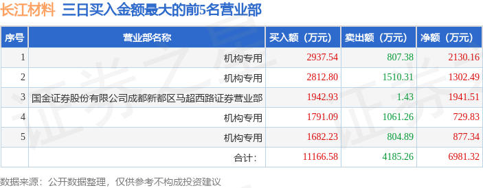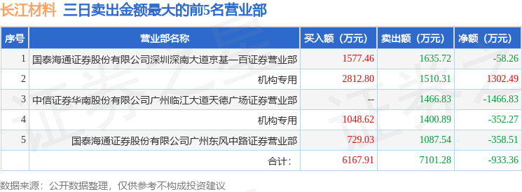 证券之星消息,沪深交易所2025年11月24日公布的交易公开信息显示,长江材料(001296)因连续三个交易日内,涨幅偏离值累计达到20%的证券登上龙虎榜。此次是近5个交易日内第1次上榜。