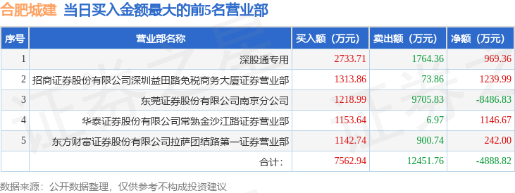 证券之星消息,沪深交易所2025年11月24日公布的交易公开信息显示,合肥城建(002208)因日跌幅偏离值达到7%的前5只证券登上龙虎榜。此次是近5个交易日内第2次上榜。