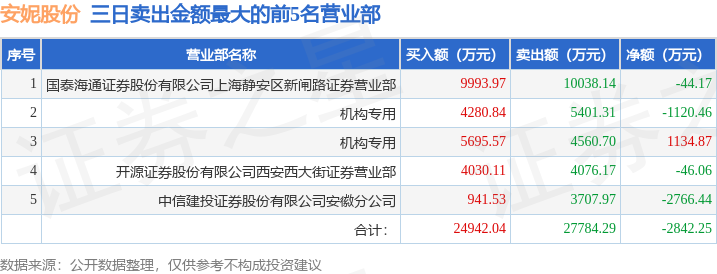 证券之星消息,沪深交易所2025年11月24日公布的交易公开信息显示,安妮股份(002235)因连续三个交易日内,涨幅偏离值累计达到20%的证券登上龙虎榜。此次是近5个交易日内第2次上榜。