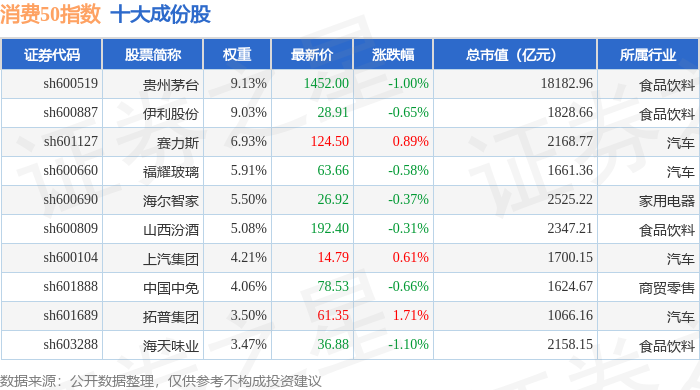 证券之星消息,11月24日,消费50(000126)指数报收于8179.92点,跌0.16%,成交313.34亿元,换手率0.94%。当日该指数成份股中,上涨的有23家,广汽集团以10.0%的涨幅领涨,下跌的有26家,伯特利以3.17%的跌幅领跌。