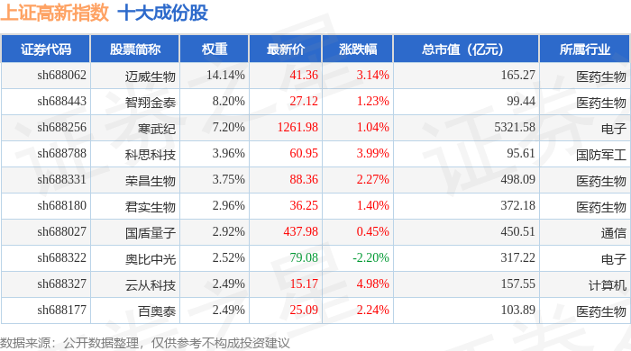 上证高新(000131)指数十大成份股详情如下: