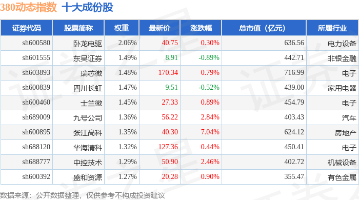 380动态(000141)指数十大成份股详情如下: