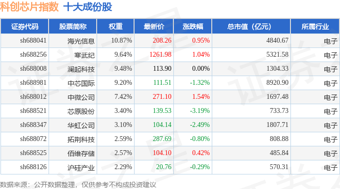 证券之星消息,11月24日,科创芯片(000685)指数报收于2399.35点,涨0.48%,成交497.36亿元,换手率1.67%。当日该指数成份股中,上涨的有37家,峰岹科技以7.49%的涨幅领涨,下跌的有12家,中科蓝讯以8.5%的跌幅领跌。
