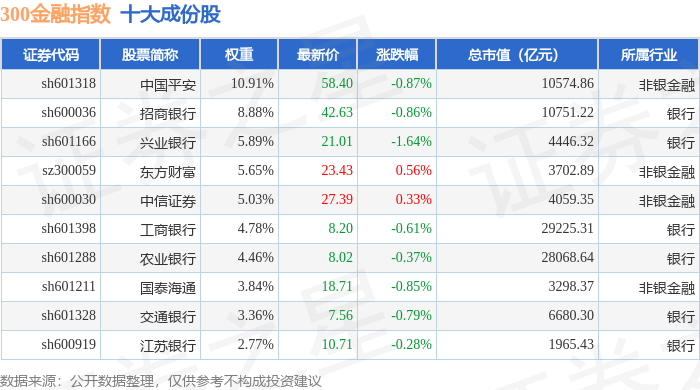 300金融(000914)指数十大成份股详情如下:
