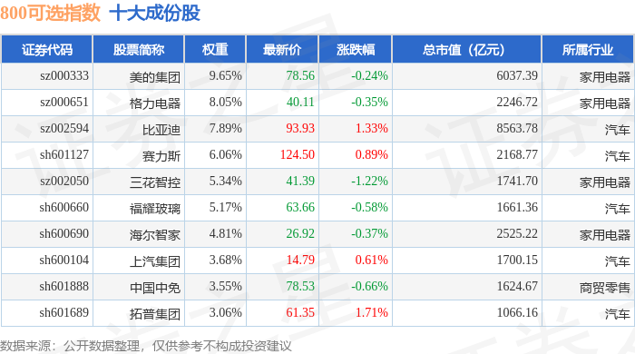 证券之星消息,11月24日,800可选(000931)指数报收于5872.77点,涨0.29%,成交410.64亿元,换手率1.08%。当日该指数成份股中,上涨的有35家,广汽集团以10.0%的涨幅领涨,下跌的有20家,伯特利以3.17%的跌幅领跌。
